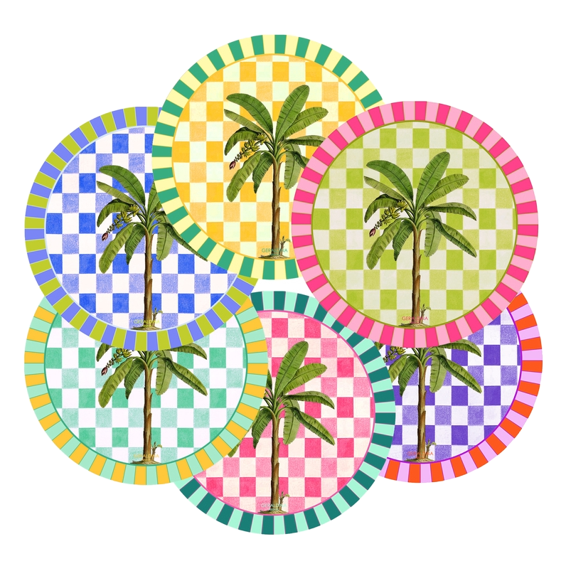 La palma, simbolo di serenità ed evasione, è protagonista di questi elementi vivaci, portando un tocco di calore ed eleganza naturale su ogni tavola. Perfetti per i momenti quotidiani o come regalo pensato, evocano atmosfere di giornate assolate e incontri rilassati.